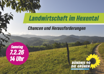 Samstag, 7. Februar 2026, 14:00 UhrBis 07.02.2026 18:30 Uhr Am 7.2.2026 besucht Anna Deparnay-Grunenberg, unsere Kandidatin im Wahlkreis 48 für die Landtagswahl 2026, zwei landwirtschaftliche Betriebe im Hexental, um sich…